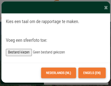Het rapport kan in het Nederlands of Engels worden gemaakt, eventueel voorzien van een sfeer/overzichtsfoto. Zodra de knop voor het maken van de rapportage wordt ingedrukt gaat FME Server aan het werk.